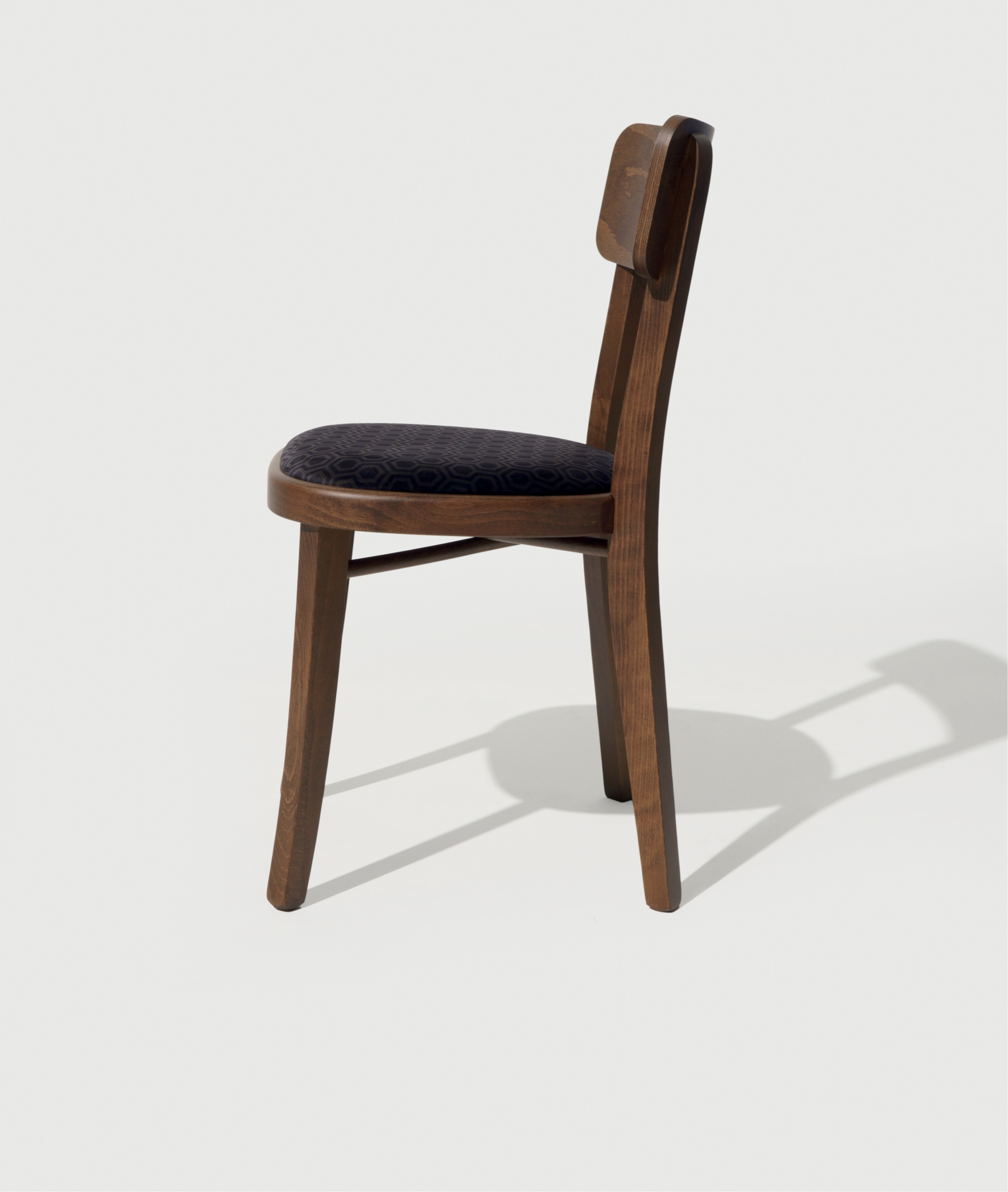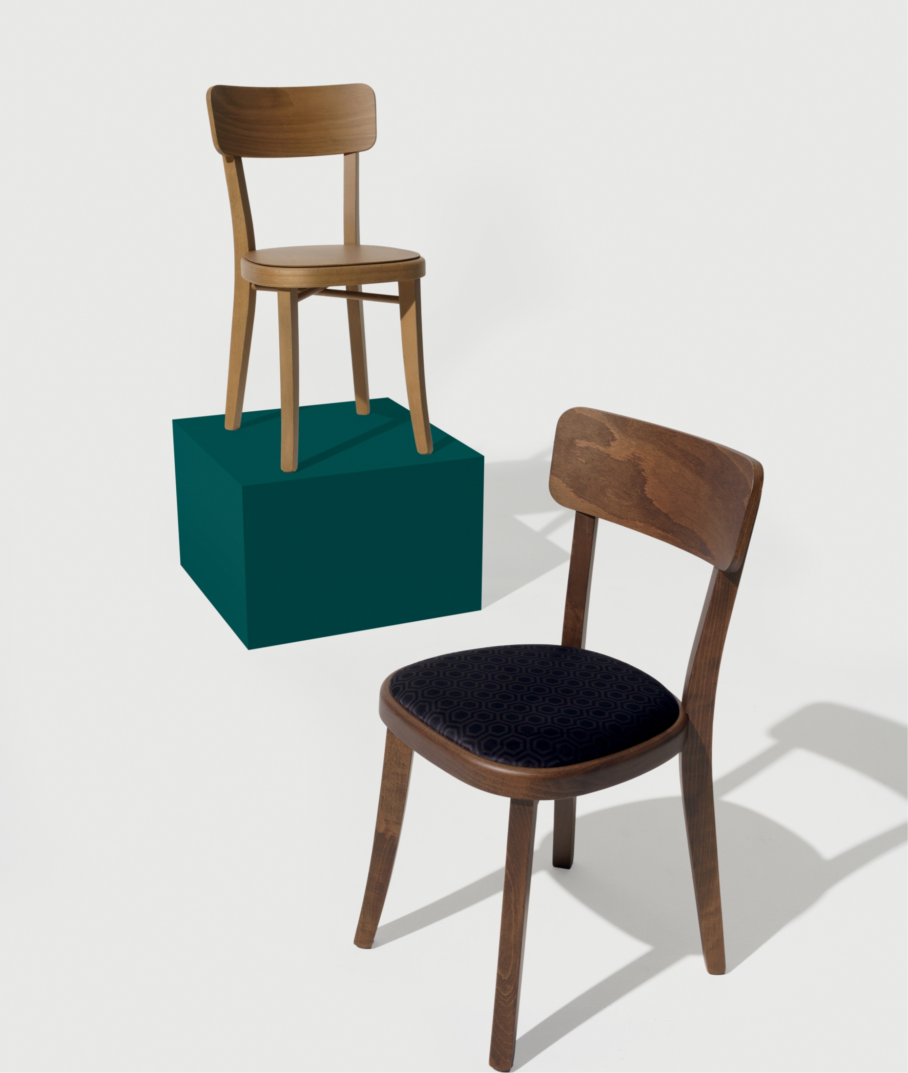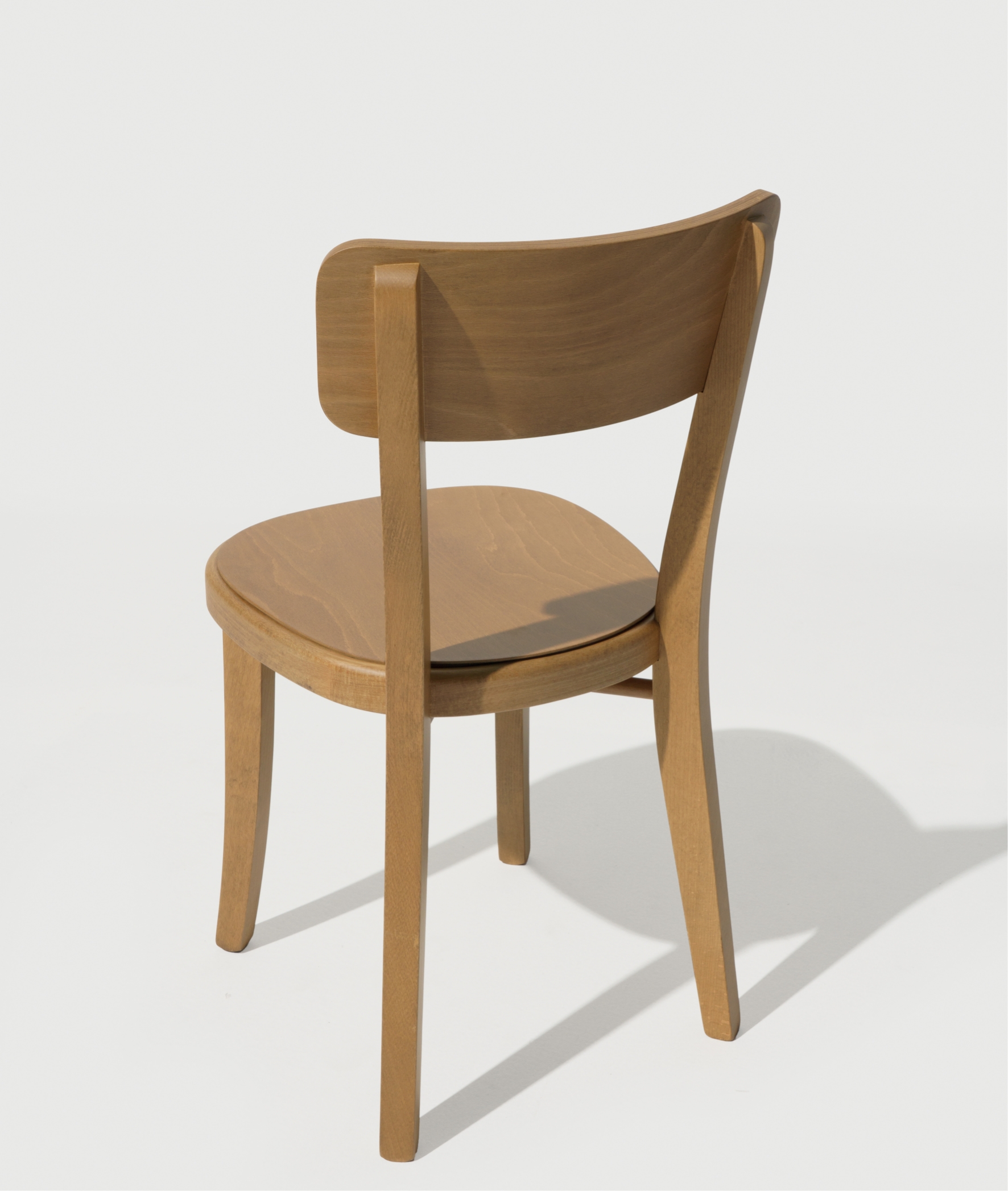 Sedia in legno di faggio con schienale in multistrato, seduta in legno massello o imbottita. Possibilità di personalizzazione su richiesta cliente.