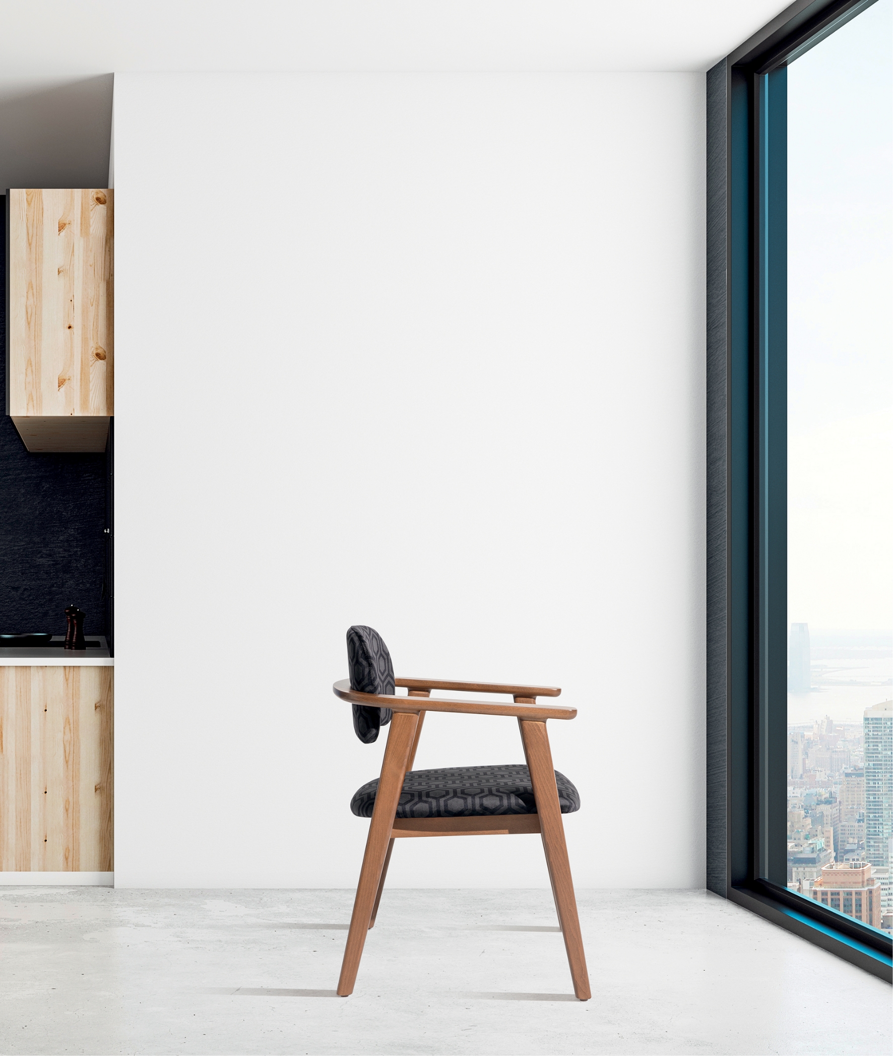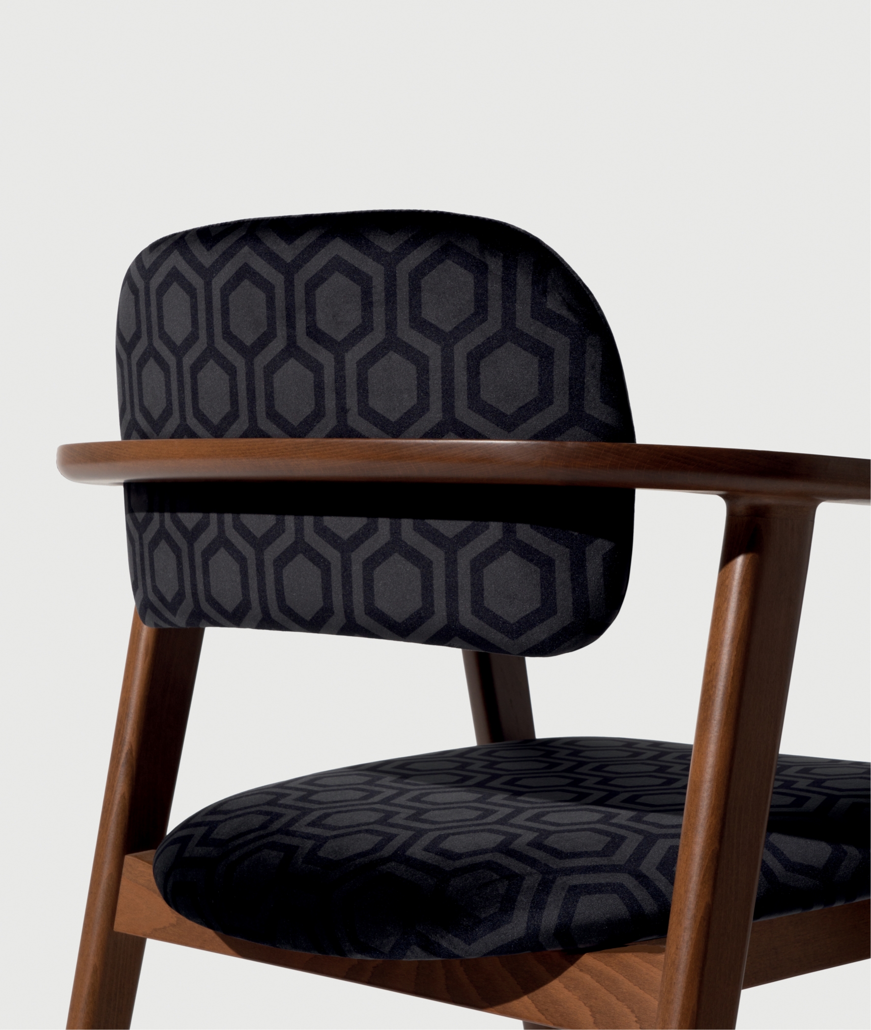 Poltrona in legno di faggio con schienale e sedile imbottito. Possibilità di personalizzazione su richiesta cliente.H:82 L:62 P:59 HS:47 LB:68